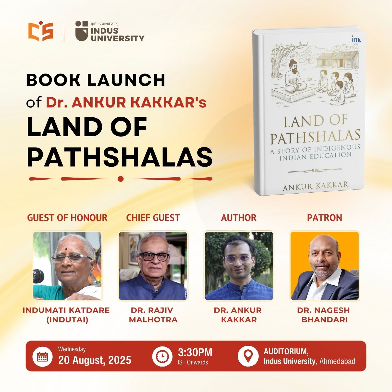 Book Launch of Dr. Ankur Kakkar's LAND OF PATHSHALAS in presence of Guest of Honour: Indumati Katdare (Indutai) Chief Guest: Dr. Rajiv Malhotra Author: Dr. Ankur Kakkar Patron: Dr. Nagesh Bhandari